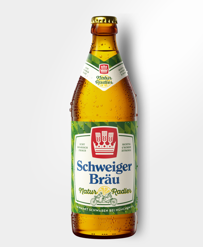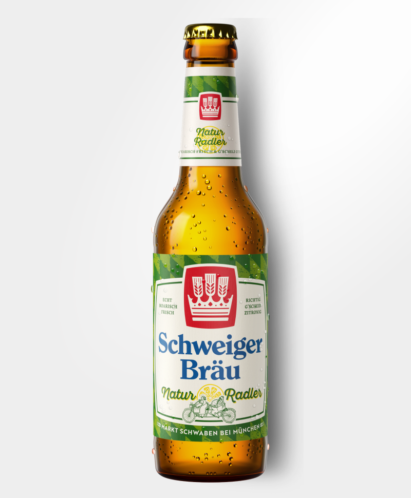 Unser Schweiger Natur Radler ist die ultimative Harmonie aus malziger Vollmundigkeit und einem fruchtigen Zitronen-Kick! Dieses naturtrübe Radler besteht zu 50 % aus „Schweiger Helles Export“ und zu 50 % aus trüber Zitronenlimonade.
